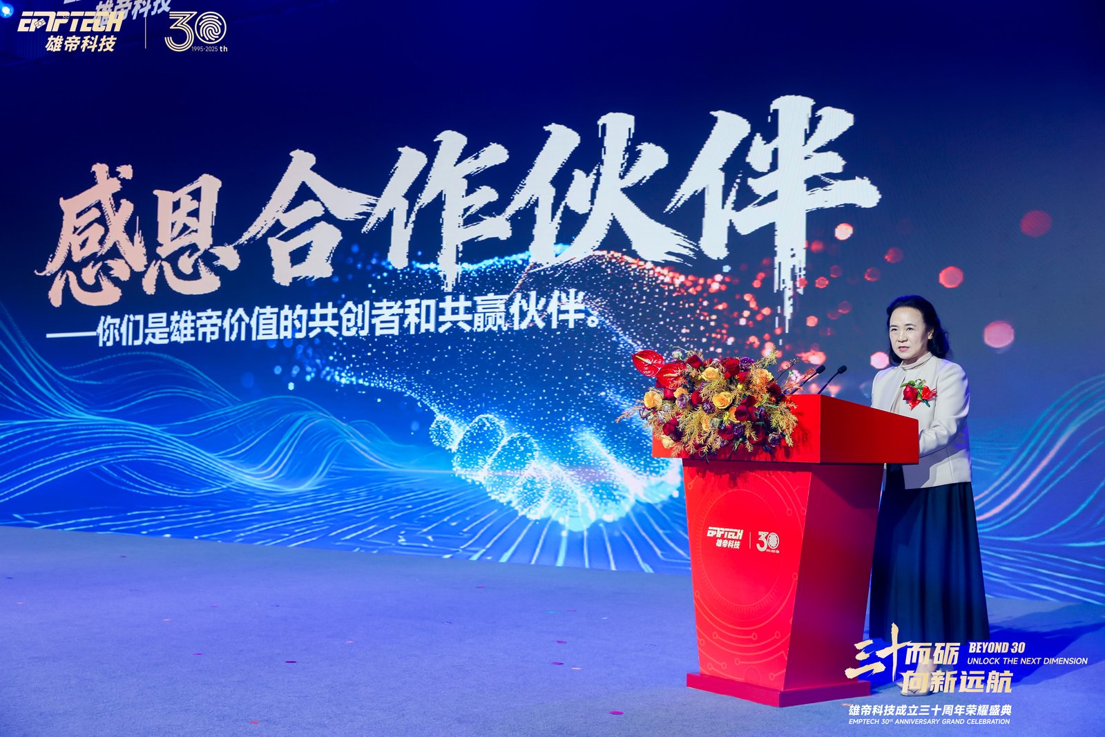Ms. GAO Jing, founder of EMPTECH, delivered a heartfelt speech reflecting on the company’s remarkable journey over the past three decades, from its entrepreneurial beginnings to its evolution into a global leader. She expressed deep gratitude to clients, partners, and all EMPTECH employees who have contributed to the company’s success. Looking ahead, Ms. GAO highlighted EMPTECH’s continued focus on AI-powered innovation and international market expansion to drive the company’s next phase of growth.